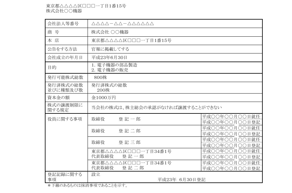 履歴事項全部証明書には、会社に関する様々な情報が記載されていますが、本店の所在地など下線が引かれて抹消された記録などは、約3年が経過すると閉鎖されて最新の履歴事項全部証明書には記載されなくなります。